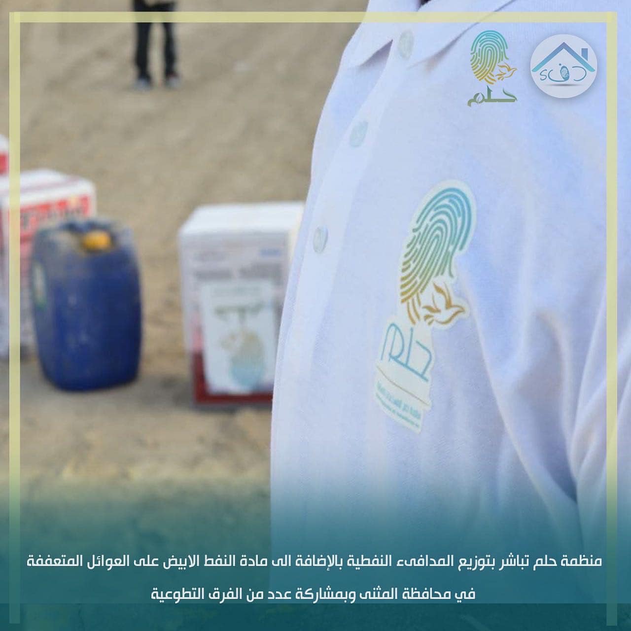 منظمة حلم تباشر بتوزيع المدافىء النفطية بالإضافة الى مادة النفط الابيض على العوائل المتعففة في محافظة المثنى