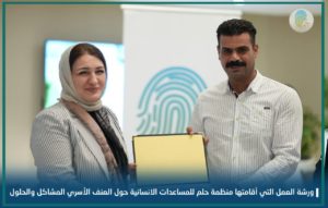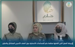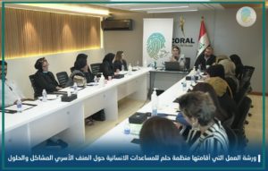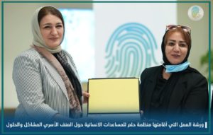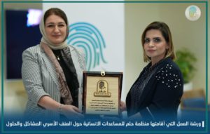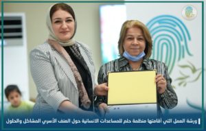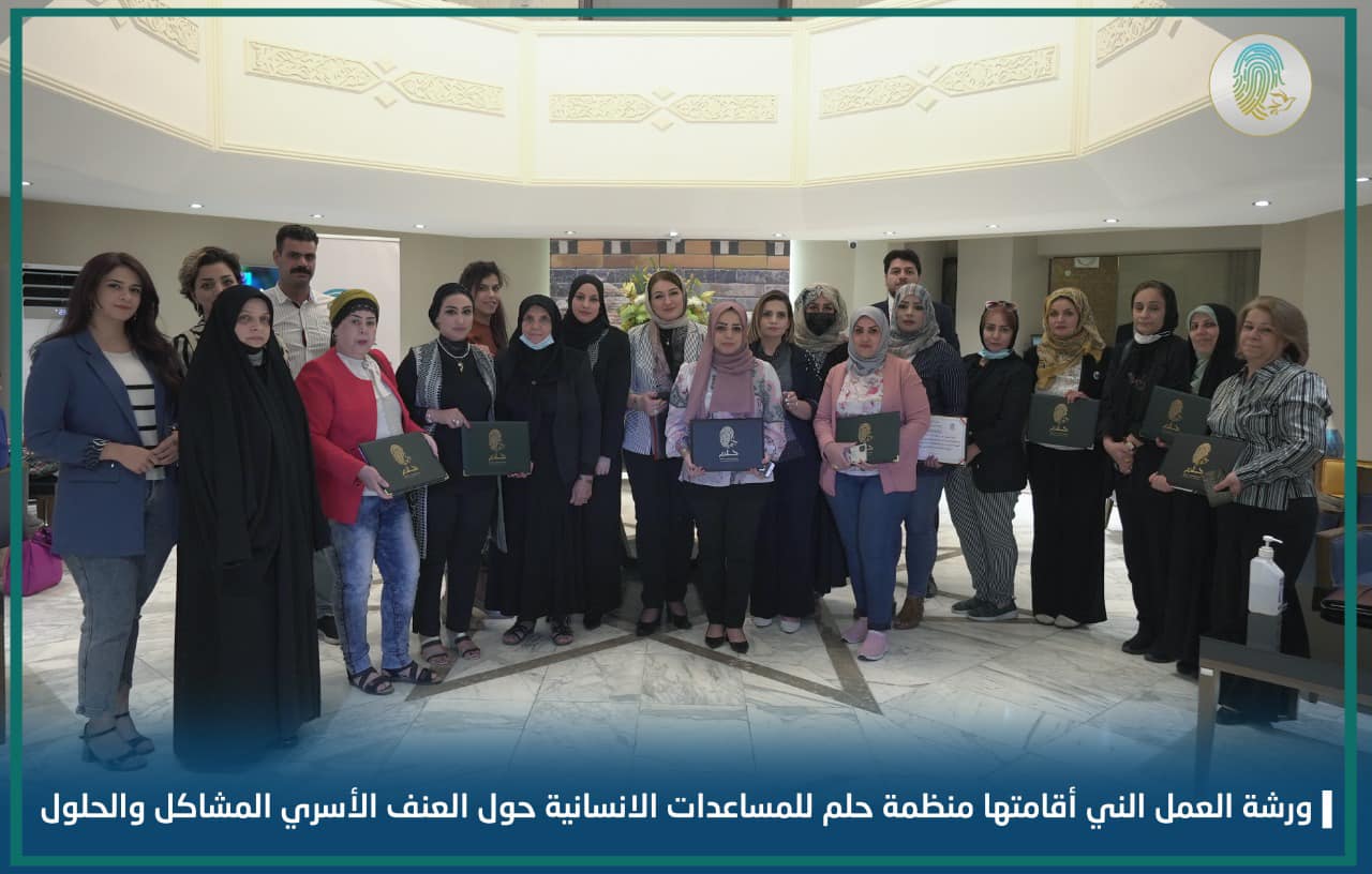 اقامت منظمة حلم للمساعدات الانسانية الورشة التدريبية التي تضمنت حضور عدد من المنظمات الفاعله وبمشاركة القضاء والشرطة المجتمعية ووزارة الداخلية والاقسام المتعلقة بالشأن الاسري في المؤسسات العراقية .. تضمنت الورشة محاضرة من اعداد د. اثمار الشطري اكادمية وباحثة في الشؤون النفسية للمرأة وعلى مدى يومين ومن اهم مخرجات هذه الورشة هو الاتفاق على توعية الاسرة بصورة كاملة من خلال تكثيف البرامج ضد الاسلوب المتبع لدى ما يحصل في المجتمع والعمل على وضع منهجية قانونية خاصة تحد من هذا الواقع المتداول والضغط على اصدار القوانين التي تضد العنف الاسري وبجميع اشكاله واختتمت الورشة بتوزيع الشهادات على الحضور كل حسب مقامه شاكرين تعاون الجميع وابداء ارائهم.
